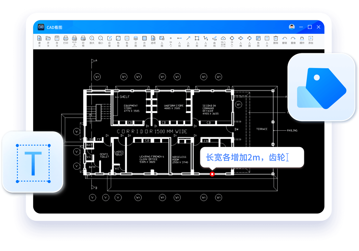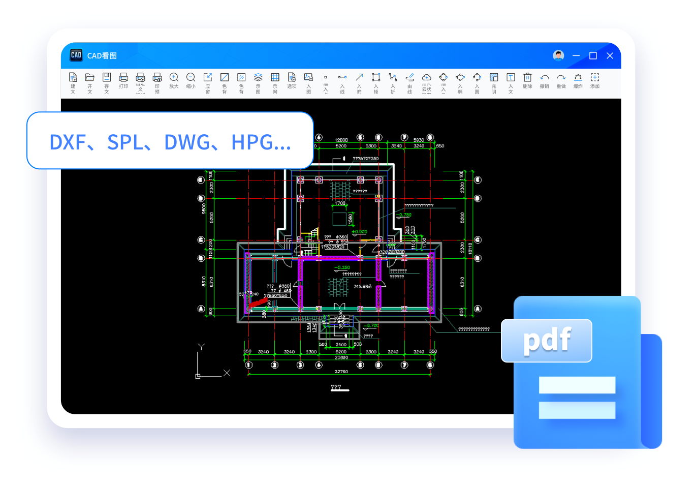 精准测量标注,文字查找/插入等功能